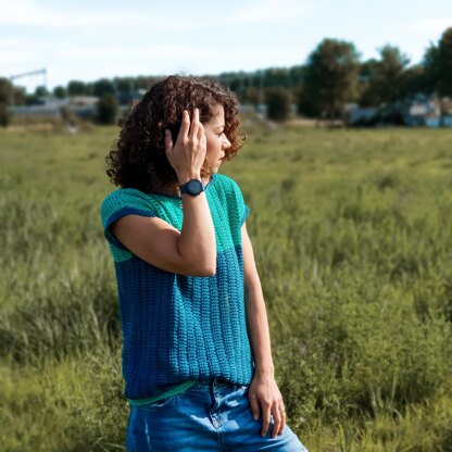The top construction is from 2 almost identical panel. For the front panel we will work less rows on the neck line section to make the top comfortable when wearing.