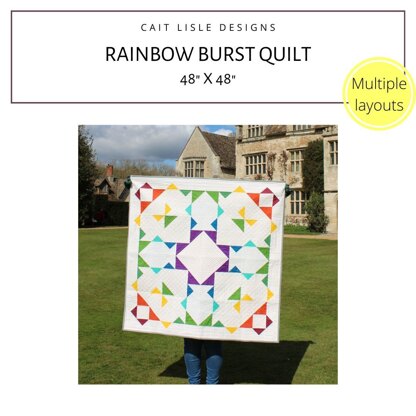 Using beginner-friendly techniques to make four big blocks, the Rainbow Burst quilt is a celebration of colour and shape. Have a play and spin your blocks around to create different effects, and two very different quilts!\n\nThe downloadable pattern includes:\n\nHelpful tips and diagrams for how to piece and assemble your quilt top\nInstructions for layout options to make multiple different quilts using the same blocks\nLots of ideas for different colour schemes and additional layouts\nColouring pages\nFat Quarter, Fat Eighth and scrap friendly\nSuitable for beginners\n\nShare your projects with #RainbowBurstQuilt and #caitlisledesigns!