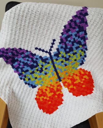 This pattern is for a stunning rainbow butterfly using C2C (corner-to-corner) stitches. Each colour blends into the next in a random pixelated fashion, creating an upifting and cheerful design. The pattern includes full instructions for every diagonal row of the design, as well as a colour diagram for the butterfly blanket.