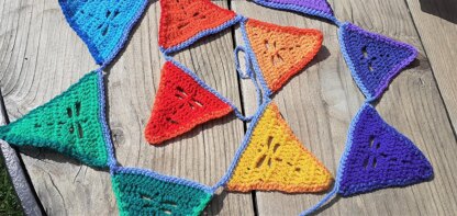 A Beautiful Bunting to brighten your day, with dragonflies detailed in each triangle! The dragonfly symbolizes wisdom, change, transformation, light and adaptability in life, and I love to incorporate them into my designs! A perfect ‘pick-me-up’, this bunting is a quick and easy project, a great stash buster and can be gifted to both young and old.. and of course, you can mix up your colour ways and tailor your bunting to complement any room! Beginner-friendly stitches are used to create this pretty bunting, plus a new, easy to master stitch, which is explained step-by-step with photos. One to add to your crochet skills set! You can customise the length of your bunting, the size of the triangles (using heavier weight yarn) and of course, it's a great stash buster! Use up all those small balls of yarn that you have left over from other projects!