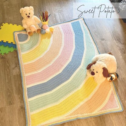 Designed with a unique “corner-to-corner”, quarter-circle design, the curve of the rainbow is crocheted right into the blanket. Plus, it is made with a stitch that leave little to no spaces for a warm crocheted fabric.