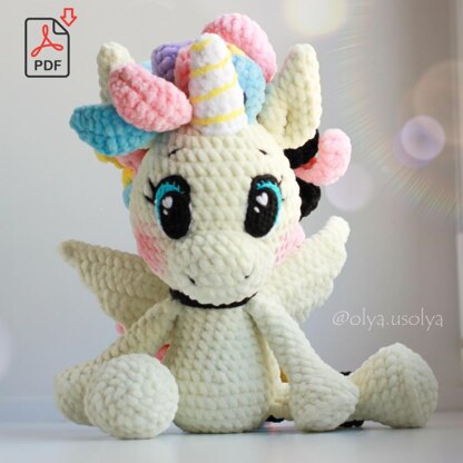 📍 This PDF crochet pattern consists of 23 pages and contains more than 40 photos of step-by-step instructions. 🎬 It contains 8 videos (on Russian, but visually uderstandable) with explanations. You only need to click on the text highlighted in blue, and your browser will redirect you to the video. It's important to have an access to the Internet, because the videos are on the network, this file contains only links to them. 📍 The crochet pattern is in U.S. terms. 🎓 Skill level: middle. As a result, you'll get a 30cm/11,8" tall cute unicorn Bon-Bon. ☝️ The unicorn can be crocheted from any yarn, but the most important thing is to choose the right hooks: the ratio of the thickness of the yarn and hooks should be 2:1 (the yarn for the body should be twice as thick as the yarn for the eyes) (the consumption of yarn can vary!).