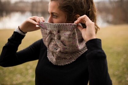 Squishy cowl with a wide cable detail. Knit with an aran weight yarn and could be substituted for a worsted weight if preferred. Quick knit perfect to gift yourself or a friend.