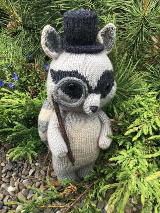 Ralph Raccoon is 28cm tall, knitted in stocking stitch throughout.