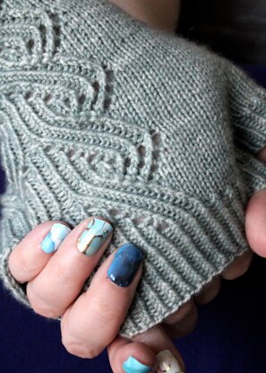Meaning wild and untamed in Scots, Rammage is a simple but fun fingerless mitts pattern with a twisted rib and lace pattern with which reminds me of owls, stags and crashing waves. The pattern wraps around the side of the hand and brushes the edge of the palm. For the perfect fit, knit a size which gives you at least 1 cm (0.5”) of negative ease. Check out Fiadhta for the matching socks!