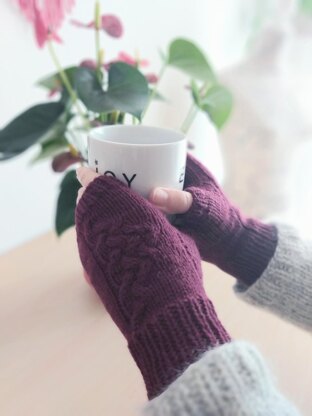 Rampicante are fingerless mitts worked seamless in the round, with cables on the back of the hand.