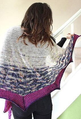 This crescent shawl is a fun and stripey number that uses a basic form of interlocking crochet on its edging to create the brioche effect that is so popular in knitting right now. You can use a whole array of yarns should you wish. Here I’ve used a luxury sport weight yarn, a fluffy 2ply silk/mohair combo and a bargain wool/acrylic blend that I’ve had in my stash for at least six years!