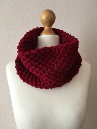 I had a bunch of the Red Heart Lisa yarn left and was looking for a quick, fun project, something that I hadn’t done before. I ended up knitting this cowl in raspberry stitch (also known as trinity stitch).