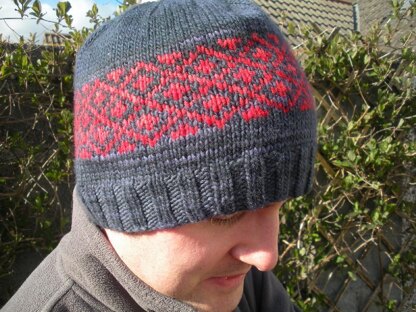 A cute little beanie knit in the round from the brim up. The colourwork is worked from a chart but it is a very simple pattern repeat and would be ideal for someone new to stranded colourwork.