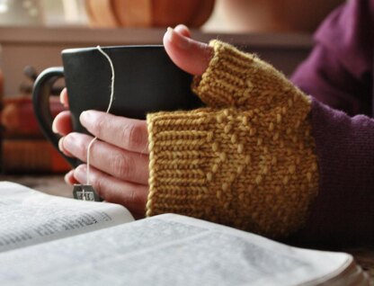 Quick and warm, these fingerless mittens are worked from the bottom up. An interesting seed stitch chevron pattern is dappled across the hand of the glove, resulting in a reversible fabric that is fun to knit and quick at the same time.