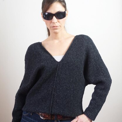 Inspired by the character of Molly in William Gibson’s Neuromancer, this side-to-side sweater with a deep V neck in both the front and back is extremely simple to make.