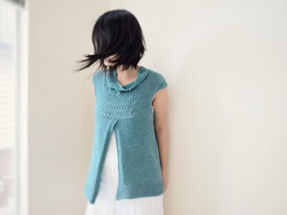 - The sweater is designed with fingering weight to be knitted into open and drapey fabric.