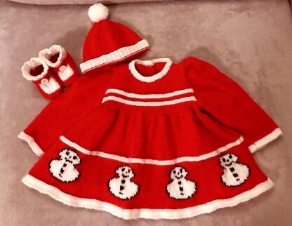 Christmas Snowman Dress,Hat & Booties Knitting Pattern.