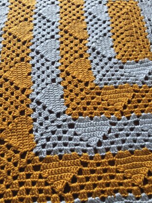 Materials 1.300 pounds/570 grams of DK/8ply yarn for 7 heart repeats like pictured (this will work with most yarns and the appropriate hook for the chosen yarn) 4.25 mm hook Needle for sewing in ends US Terms used Chain = Ch Double crochet =Dc Slip stitch = Slst 3 double crochet together in the same stitch = dc3tog 5 double crochet together in the same stitch = dc5tog Gauge is not important for this pattern Use the recommended hook for the yarn you are using Notes: you will not turn your work Chain stitches are always counted Across refers to across one side Around refers to around the whole blanket Stitches in ** are repeated Stitches in () are the corner stitches and stitch count Stitches in are repeated the stated amount of times for example 3dc 3 X Stitches in {} are the heart stitches