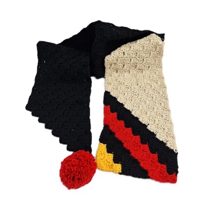 Black (600y/546m/300g), Red including pompom (50y/46m/25g), Beige (50y/46m/25g), small amount of Yellow.
