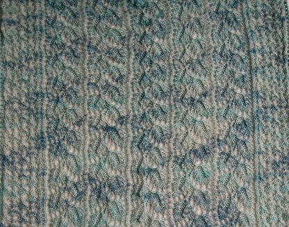 This shawl is comprised of two distinct lace stitches. They are both charted and written out line by line. Together they make a beautiful shawl, suitable for Intermediate knitters.