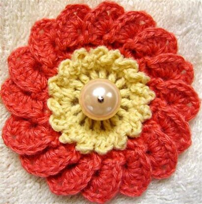 Decorate your clothes, bag, etc with nice peach flower, continuous crochet without sewing. This is stiffened by spray starch, it can be wash and re-starch. Gauge does not important; you can use any yarn you like. You can also glue it on a safety pin/hair-grip to become brooch/hair-grips, it can easily be change depend on variety occasion. Simple but cute. Hope you enjoy it :)