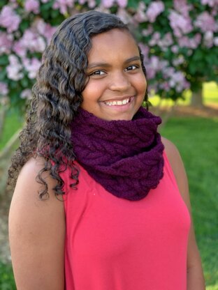 Red Plums is knit in aran weight yarn in a flat construction. When finished just some quick grafting to finish the cowl. The thick and squishy cables in this pattern are repetitive and you may find yourself memorizing them as you knit while enjoying great conversation with friends or family. Enjoy!
