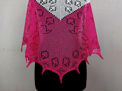 SAMPLE SHAWL: 100% wool and 100% merino 2/28 1400m/100g 40g of rasberry pink and 18g of white 6 mm and 3,5 mm needles 743 nupps 161 x 71 cm
