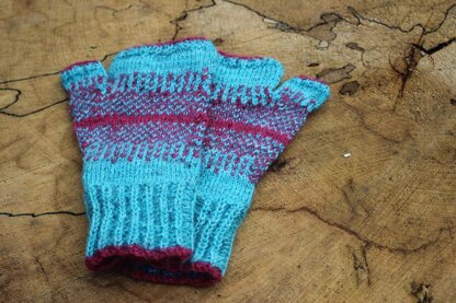 Perfect for mini skeins or stashbusting These mitts use 30g of the main colour and 20g of the contrast.