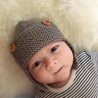 This is an easy pattern for an aviator hat with 6 sizes from birth to 5+ years.