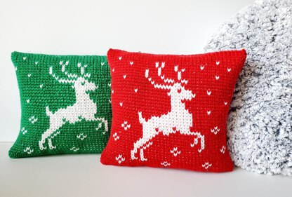 It’s easy to add holiday spirit to any room with the Reindeer Pillow. I love to see these graceful jumping reindeers on my couch, so I invite you to join me crocheting the Reindeer Pillow.
