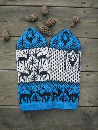 The PDF contains charts in multiple combinations of straight and negative colors, which makes it a lot easier to knit. There is also a bonus chart for a hat, also in straight/negative. Photos of Marit Skavlid - Mitt on Ravelry.