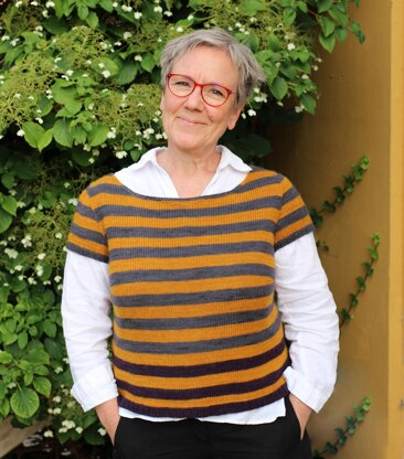 Repartee is the perfect layering piece. Or for wear on on its own. Hem and cuffs are split for extra roominess. A wide neckline works either for layering or can make this a breezy summer Tee, perhaps knitted with a linen or silk blend? My own Repartee is knitted in Caravan, a soft and luxurious sportweight yarn from Yarn Culture – a natural choice for the Repartee Jubilæum Kits.