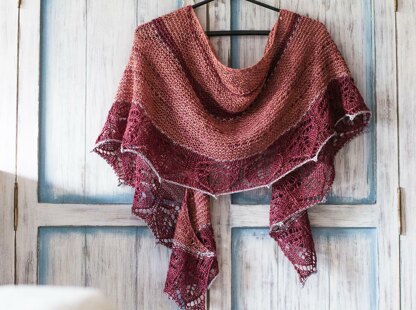 Difficulty: Intermediate. Lace, garter slip stitches, short rows, picot bind off.