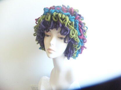 This is a really fun and colourful wighat. I have called it a wighat as you can wear it as a party wig or simply as a hat. Snowboarders could look very colourful in this.
