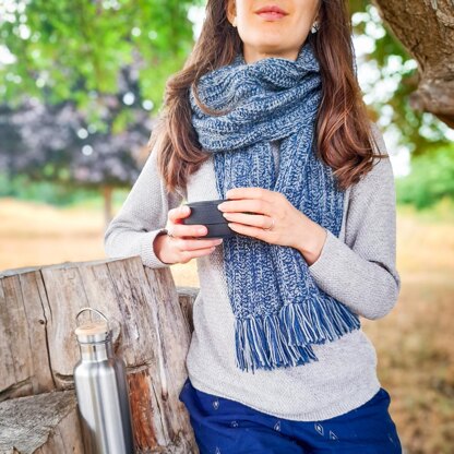 This chunky unisex scarf is designed to keep you extra toasty; uses 2 colours held double to create a beautiful marled effect; and has a double-sided subtle striped st texture.