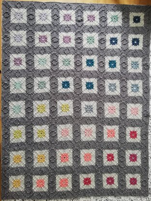Easy to make, with endless possibility for color combinations, a granny square blanket is an all-time favorite. Featuring an interesting texture and beautiful colors, with splashes of the color on grey background and different flower & diamond bobble motifs, this pattern makes a blanket really stand out.