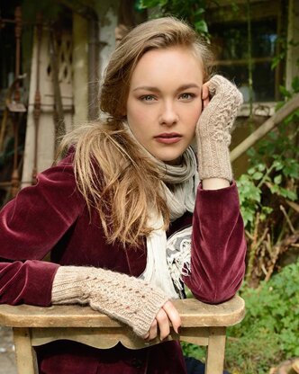 Wrist warmers are increasingly popular as they keep your pulse point warm, so your fingers don’t get cold, and you can still swipe the screen on your electronic devices. The Rhea wrist warmers are practical and pretty; on one side there is the feminine lace detail and the practical ribbed part makes them fit snugly. Knitted on circular needles, little finishing is needed and these are a quick project to make. Knitted on 4 mm circular needles. Tension: 20 sts and 29 rows to 10 cm square over Stocking Stitch. Photographed in the colour Alpaca Dawn. Knitted in Purl Alpaca Designs 100% pure alpaca Fine yarn. A substitute yarn is shown below.