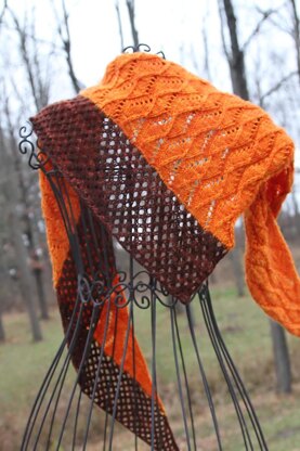 RhombIcus is a triangular shawl knitted from side to side. This is an adjustable shawl, which could be smaller or bigger. The contrasting color is optional as the pattern made with contrasting color. The knitter, just simply, can finish the shawl after main pattern. However, the contrasting color adds some charm to the item. The shawl could be worn in different ways - could be fully spread shawl, could be folded couple times and thrown over the shoulders like a scarf or wrapped around the neck in a cold day like a cowl.