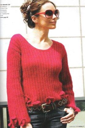 This is a pattern for a Rib and Flower Jumper, originally published in Knitting magazine. It is in rib with flowers sewn on when completed. The yarn is now discontinued, any yarn knitting to the tension can be use. Tension on stocking stitch is 19 sts x 25 rows on 5mm needles. Photo Laurel Guilfoyle or Knitting magazine.