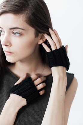 Rib knit half gloves to warm your palms. Angled edges can be worn either facing or away from your fingers.