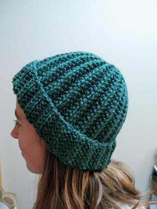 A versatile hat pattern, using the stitch pattern sometimes referred to as "Mistake Rib Stitch". This is a "stretchy" type of ribbing and the hat will fit most adults.