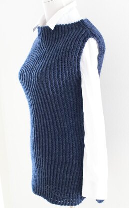 Very, very simple structure. Knits up quickly! You can wear it with a shirt or as a sleeveless top.