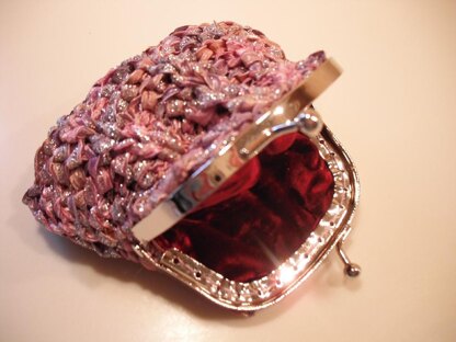 A simple but very glitzy coin purse, perfect for presents. I can see these filled with small chocolate eggs, just right for Easter presents! It is quick to make for an experienced knitter/sewer - I made mine in less than 2 hours - so these make great last minute gifts. A sew-in frame is recommended.