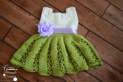 The infant [Ribbon and Lace dress][1] was such a hit and I had so many requests for toddler sizes that I worked it up :) It is fun to pair with leggings and wear for every day or dress it up for church or weddings. This would be darling for little flower girls at weddings too!