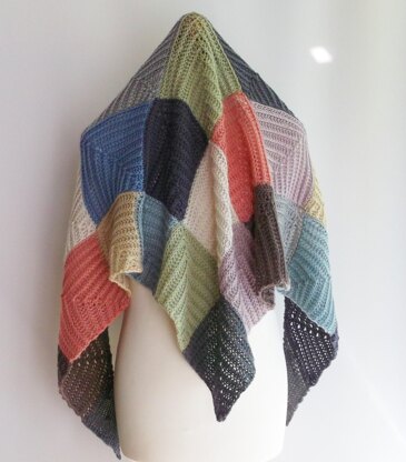 Knit this mitred square shawl, with a fishermans rib pattern, using any double knit weight yarn from your stash. ,