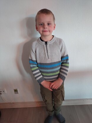 RICKY - a nice and practical 5-coloured polo jersey in DK-weight cotton - made for my grandson. Long raglan sleeves optimizing the fit. The jersey is coloured in stripes giving one the possibility to use left over yarn or to make nice colour-ways. The sleeves are worked separately and then worked together with the body in raglan. The body are worked in rounds on circular needles and the sleeves flat back and forth. This design is also good in girlish colours. Required skill level from 1 (basic) to 5 (advanced): 3↑. The measurements given throughout the pattern are all in cm as well as in inches.