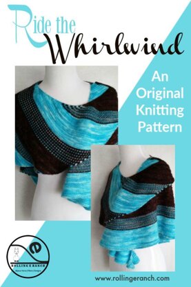 Ride the Whirlwind is an asymmetrical crescent shaped shawl, which is worked in two colors, and uses several different stitch patterns to provide texture and visual interest.