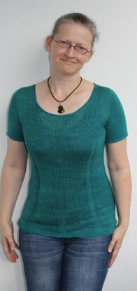 The shirt is completely seamless. Shown in size S, Wollmeise "Pure" and Fleece Artist "Sea Wool" and size M (green Ridley), Wollmeise "Pure".