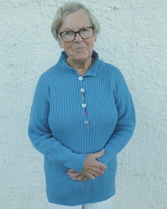 RIESI JERSEY - a nice and cosy sweater/jersey in 4-ply weight wool for the wintertime. The jersey is part of the set Riesi but it is also very appropriate to use alone. Beautiful as a short version as well as a longer version. The pattern is a ribbed pattern enjoyable making. Drop-sleeves. Detailed written pattern. Worked flat. The jersey is a part of the set Riesi but it is very suitable on it's own.