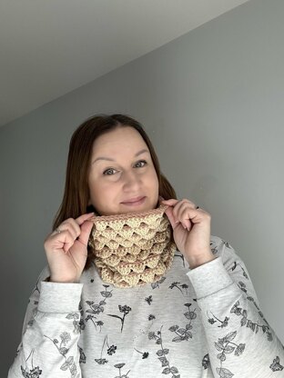 Beginner friendly crochet cowl pattern PDF.