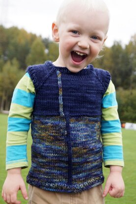 Seamless knitting with some extra spice! Rim, Swedish for "rhyme", is a top-down vest that will keep the little one warm and happy. The garment is worked in one piece from the top down, featuring a knit-as-you-go I-cord with a fun twist. This two color creation gives the perfect opportunity to play around with fun combinations.