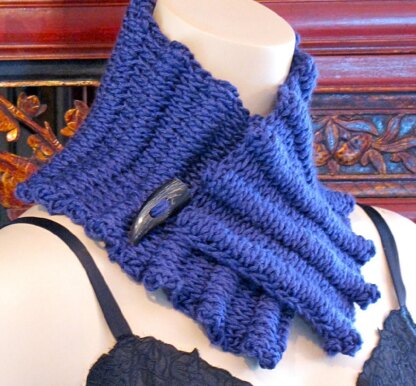 One long edge of the cowl stretches more than the other while worn, but when measured flat, the cowl looks like a simple rectangle. This increases the ways it can be worn; for example, I actually prefer the look of the grey one when worn upside down (stretchier side open at to