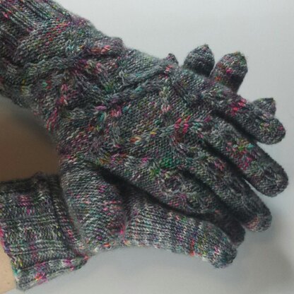 I wanted to experiment with different techniques to make the cable patterns pop off the backgrounds of the glove, so I did both a knit and purl version of the gloves. You can mix and match the two and have fraternal gloves or two of the same kind, it is your choice. The charts for the back of each of the gloves are provided along with the written instructions. The pattern was written using two circular needles, but magic loop can also be used. The pattern as written will produced a glove with zero ease for a medium women’s hand and negative ease for a large woman’s hand.