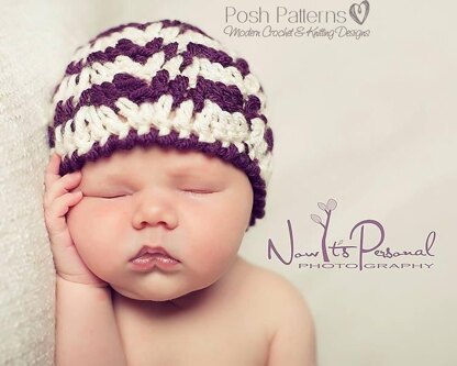 This pattern makes a gorgeous and elegant crochet beanie with a pretty ripple stitch design. The scalloped edge gives it a feminine feel, and a classy touch. Adorable photo prop!!